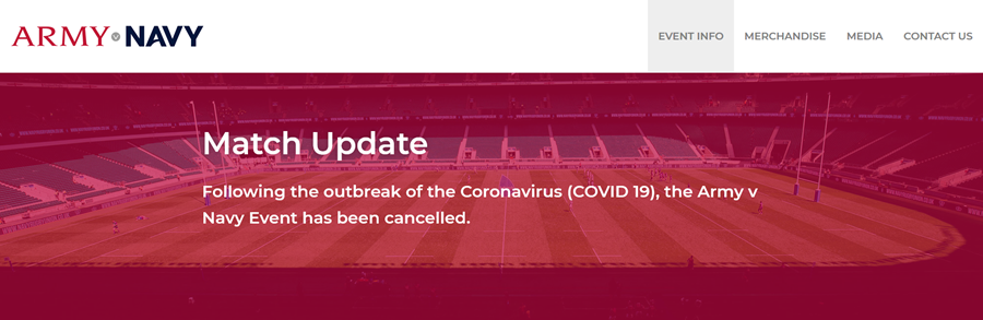 The 2020 Army v Navy match due to be played at Twickenham has been cancelled. Full refunds for all tickets and wristbands purchased will be made. All ticket holders will receive an email on the refund process from Adrian Cubbin the event organiser.